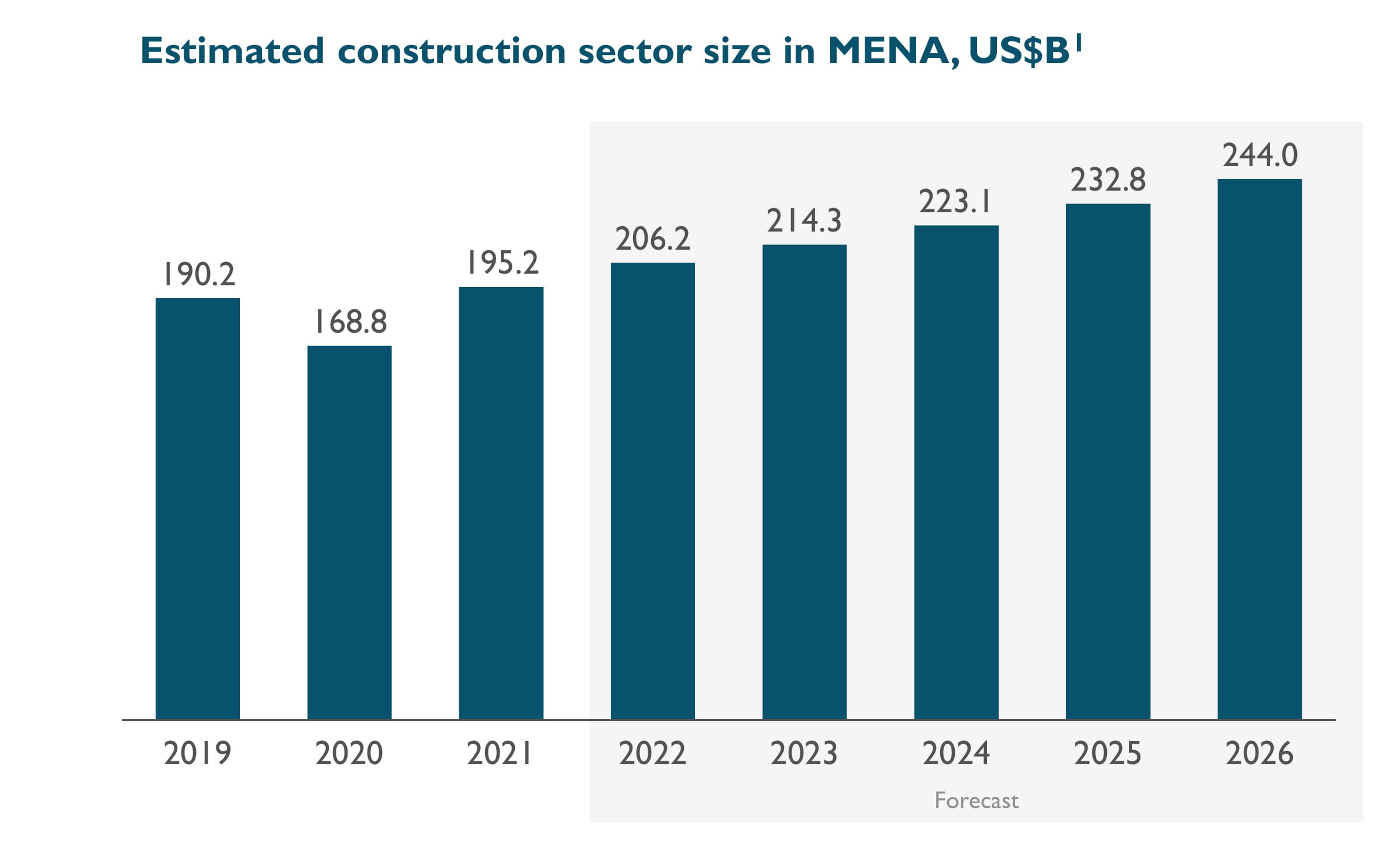 The construction sector in the MENA region represents ~US$200B in annual economic value, driven by a steady demand for projects and infrastructure